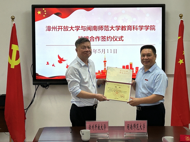水相荡而生涟漪,石相激而发灵光。为顺应当前教育数字化的发展需要,促进教育人才的培养,实现教育高质量发展的双赢目标,5月11日,漳州开放大学与闽南师范大学教育科学学院举行战略合作签约仪式,签约仪式在漳州开放大学修为楼508会议室举行。
