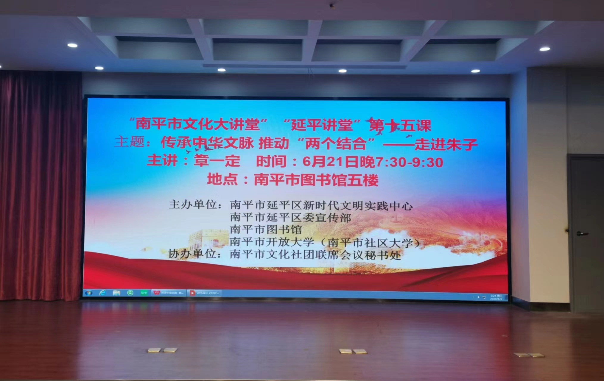 为深入贯彻党的二十大精神,推进“党建+朱子文化建设”,落实“朱子文化进校园”工作安排, 6月21日晚上,南平开放大学(南平市社区大学)邀请南平市朱子文化研究会同文书院院长、南平开放大学客座教授章一定作《传承中华文脉 推动“两个结合”——走进朱子》主题讲座。南平开放大学师生、社会团体成员、社区居民80余人聆听了讲座。