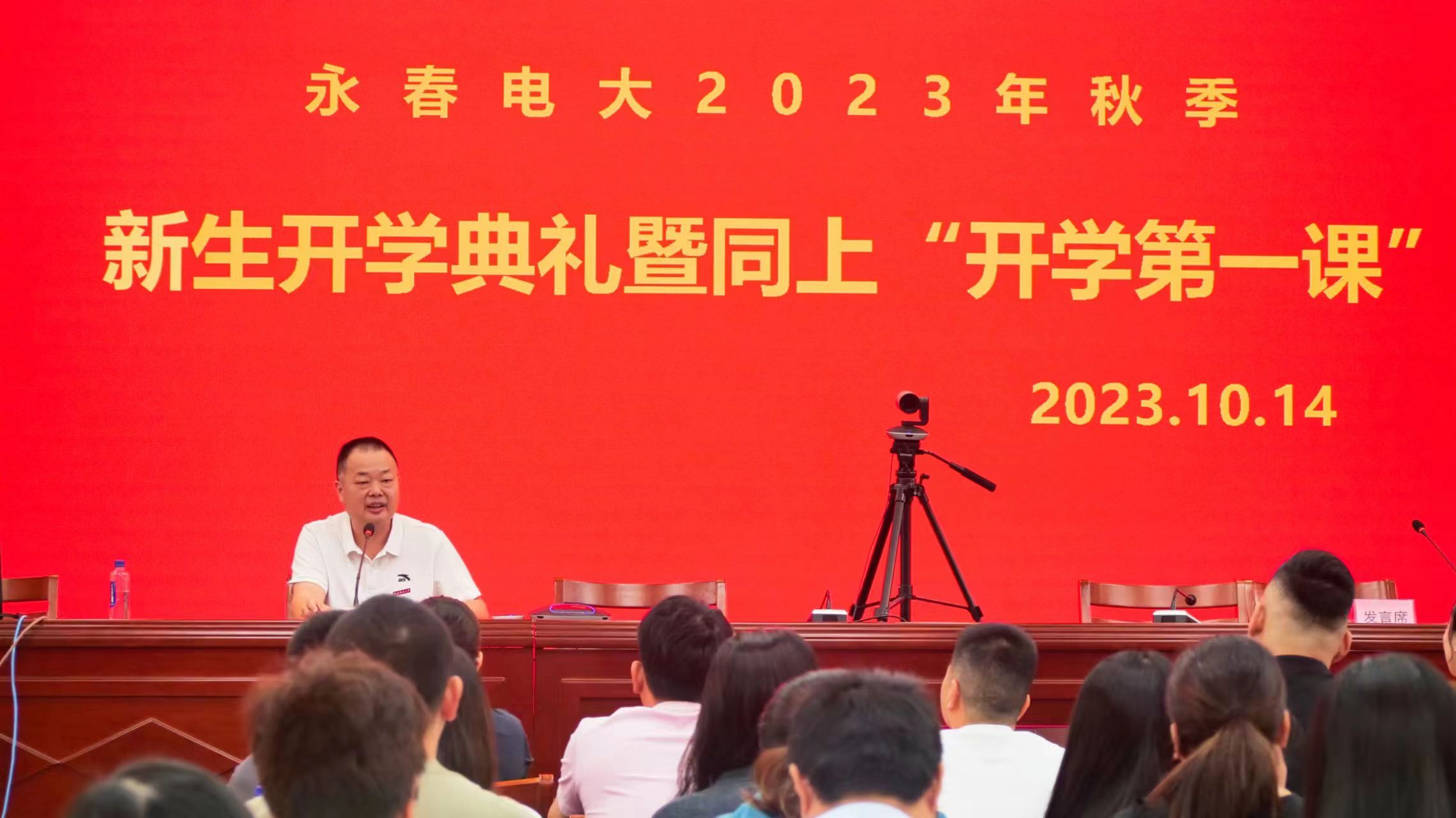 10月14日上午,福建开放大学举办2023年秋季新生开学典礼暨同上“开学第一课”,福建开放大学永春学院在县教育中心六楼会议室设立分会场收看直播,并在分会场举办福建开放大学永春学院2023年秋季开学典礼暨同上“开学第一课”。永春县教育局三级调研员李锦江出席活动,学院全体教职工及2023年秋季新生代表参加。