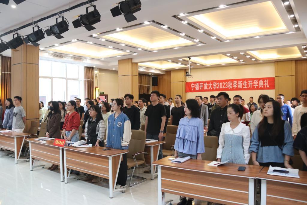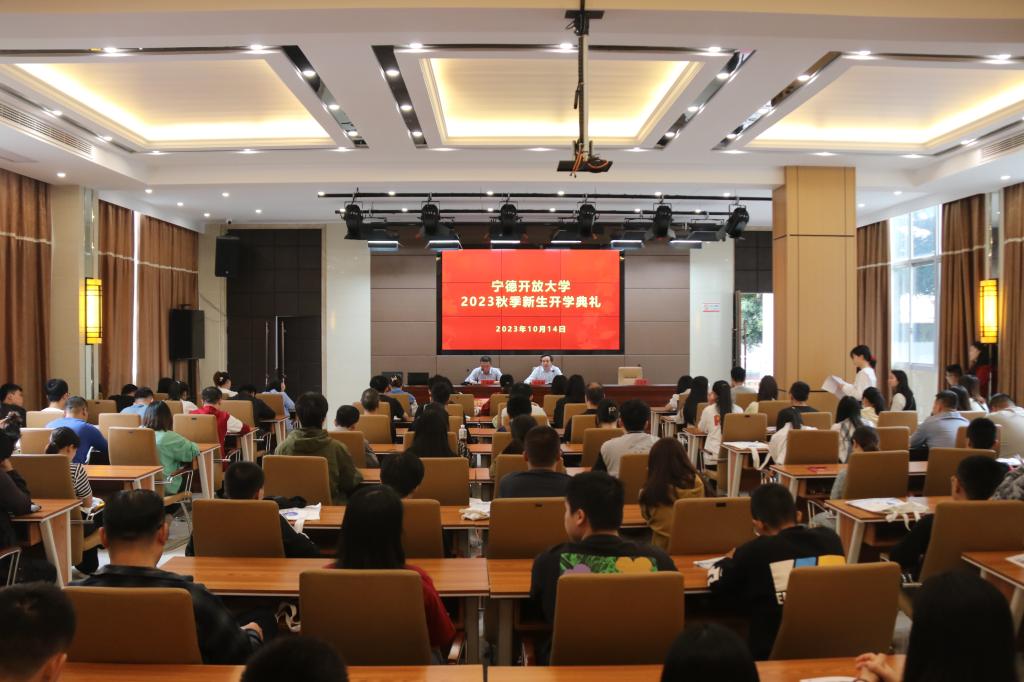 10月14日上午,宁德开放大学举行2023年秋季新生开学典礼,新生代表100多人参加。宁德开放大学党委书记、校长叶祖庚,副校长王晓飚出席,典礼由王晓飚主持。新生代表们还观看了福建开放大学新生开学典礼暨同上“开学第一课”。