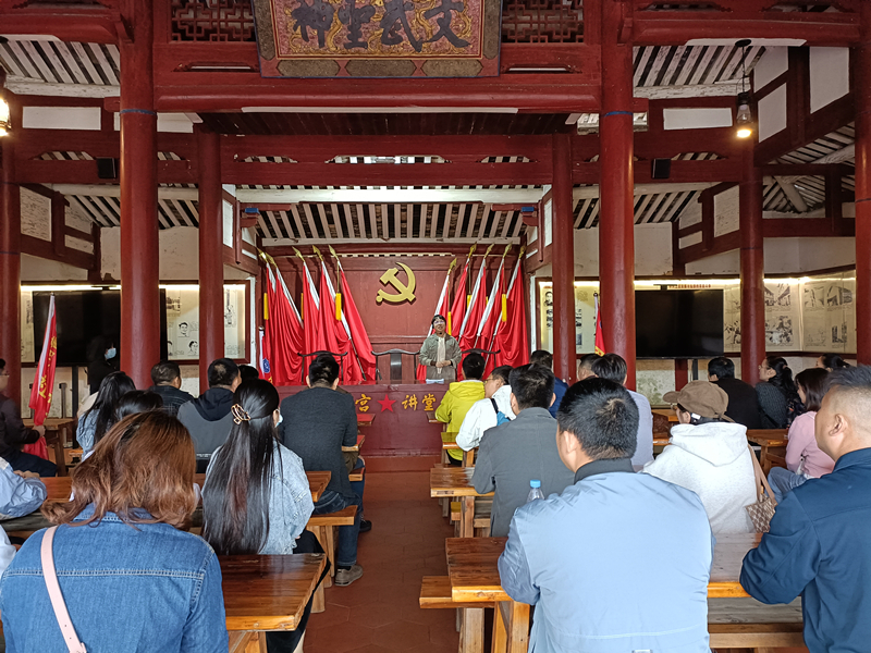 在兴山村,师生们参观了爱国主义教育基地——中共上宫支部旧址。大家在一幅幅照片、一件件历史遗物、一篇篇发黄的手稿中,深刻感悟到革命先辈艰苦奋斗、百折不挠的革命精神。行至馨山书院,郑丽榕老师在上宫讲堂为学生们上了一堂生动的思政课,向学生们讲述上宫支部的发展历程,追寻红色记忆,回顾先烈的光辉事迹。兴角山下,星火点燃,郑丽榕老师还带领在场的党员重温了入党誓言。