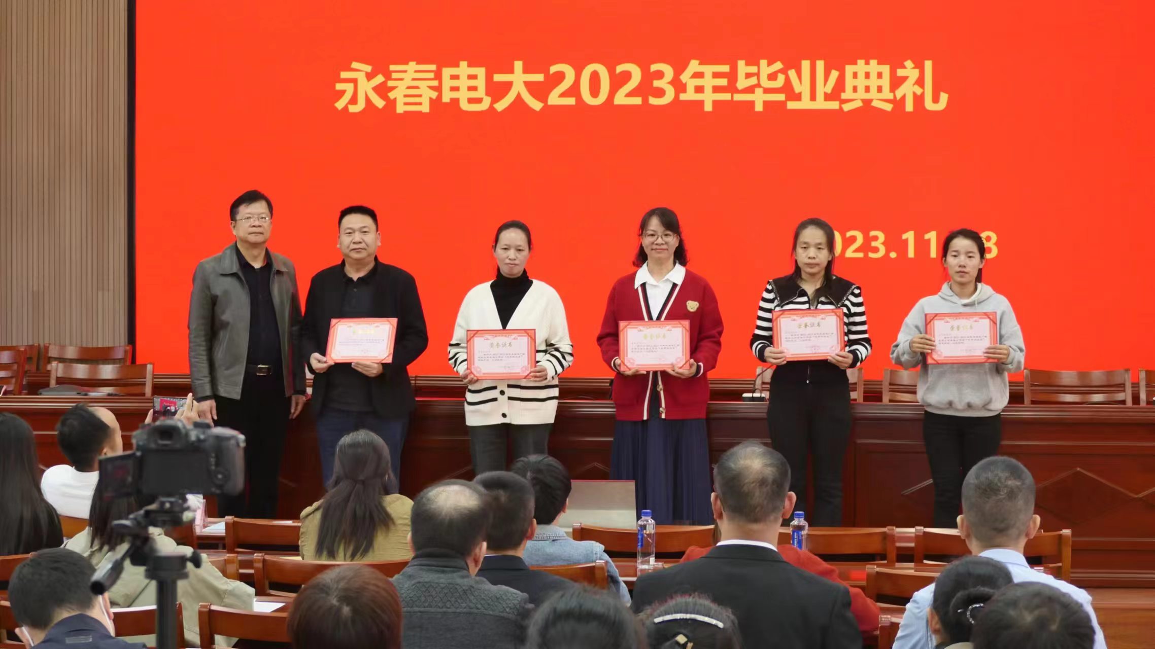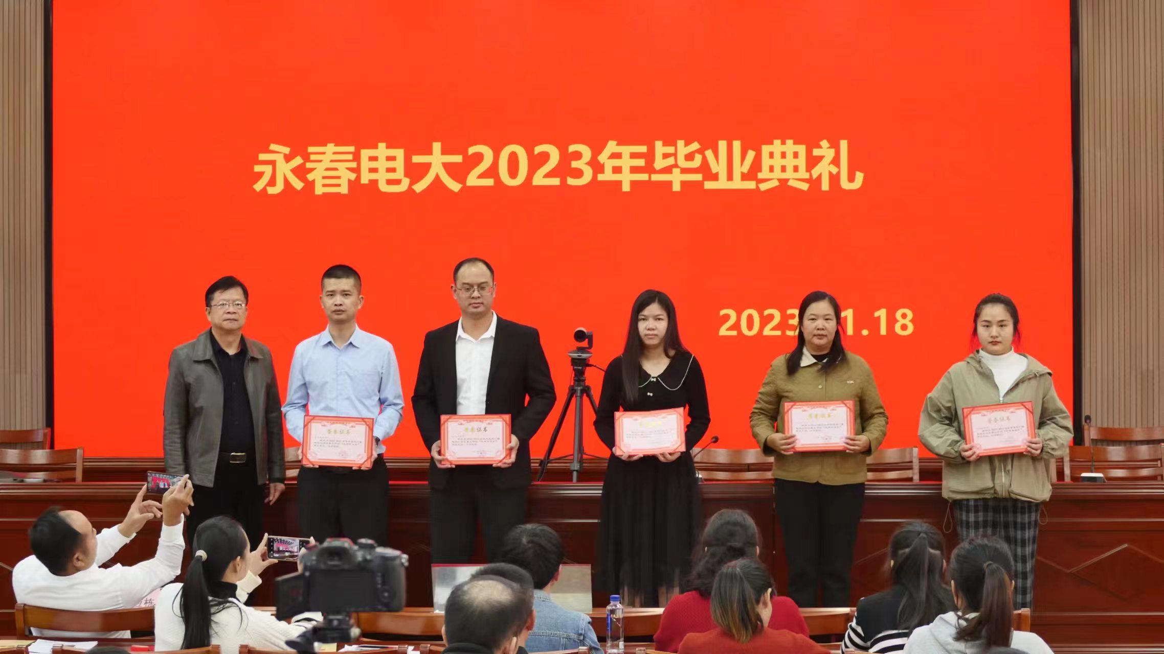 李锦江(左一)为永春学院2022-2023年度优秀毕业生代表颁发荣誉证书