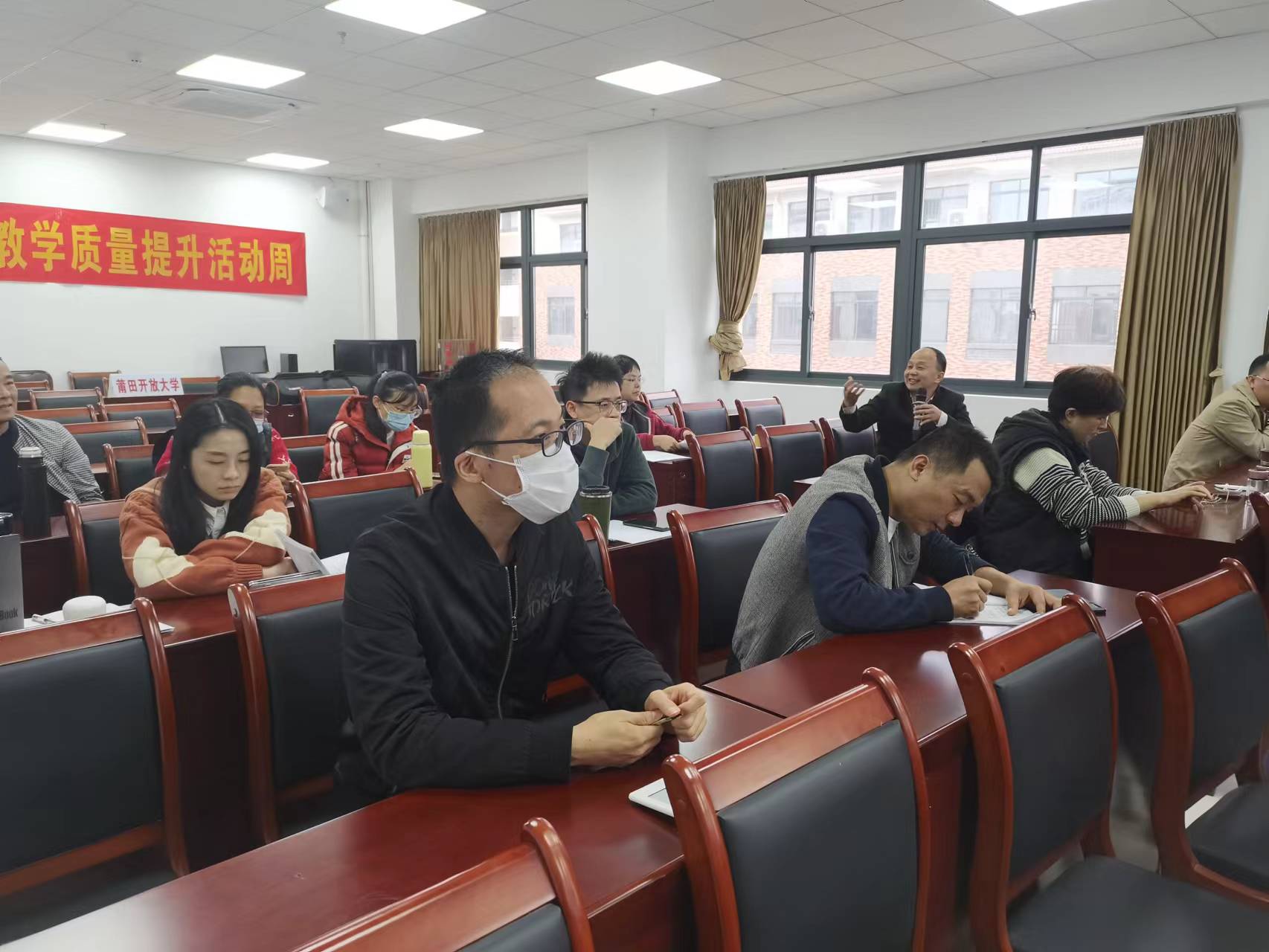 为落实学校主题教育关于学校教学质量提升的精神,扎实推动教师教学能力提升,着力强化教师队伍建设、教学人才储备,12月11日至12月14日,莆田开放大学举行了“莆田开放大学教师教学能力提升活动周”研课活动,通过教学“比武”,帮助全校教师强化树立精品意识,为提升教学质量夯实基础。本次研课活动全体教师参加,围绕习近平生态文明思想、文化建设、乡村振兴、魅力莆田、信息安全技术和家庭教育等内容,结合经济和社会发展的实践案例进行专题试讲,校领导、教学人员全部参与。