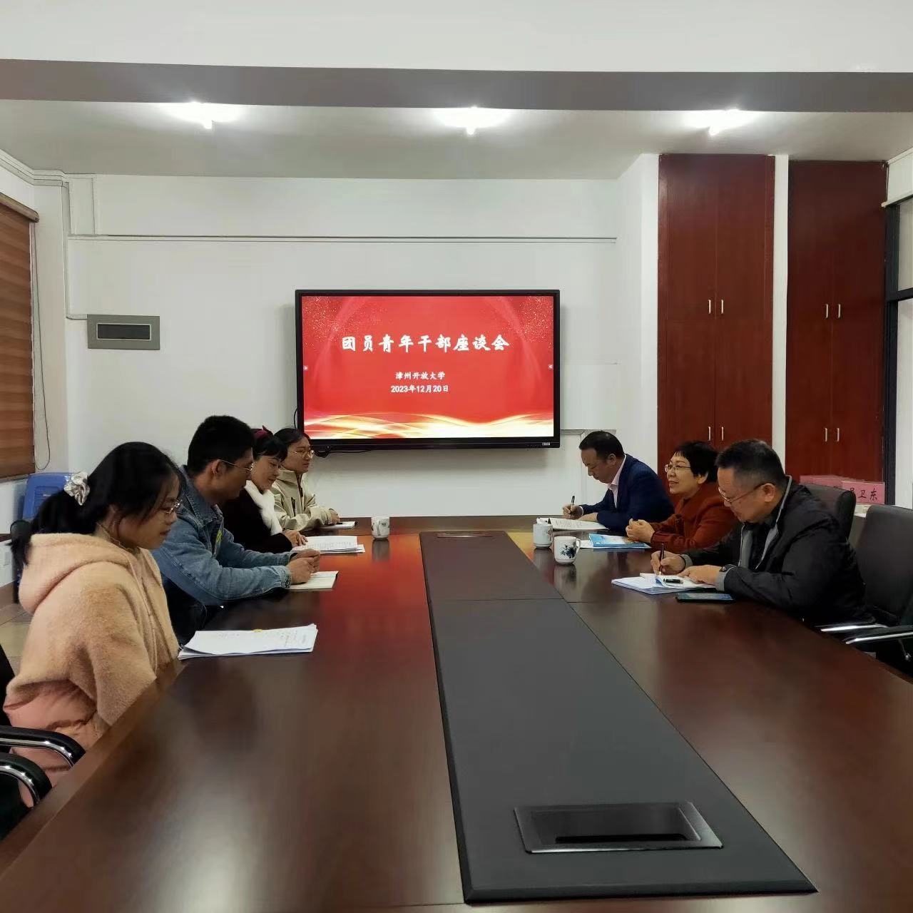 为深入开展学习贯彻习近平新时代中国特色社会主义思想主题教育, 贯彻落实习近平总书记关于青年工作的重要论述,加强对共青团员和青年干部的政治锻造和政治引领,推动主题教育在团员和青年干部中走深走实,近日,漳州开放大学组织召开团员和青年干部主题教育座谈会,引导团员和青年干部坚持用习近平新时代中国特色社会主义思想凝心铸魂,坚定理想信念,深刻领悟“两个确立”的决定性意义,增强“四个意识”、坚定“四个自信”、做到“两个维护”,坚定不移听党话、跟党走。会议由学校党委副书记林之枫主持。