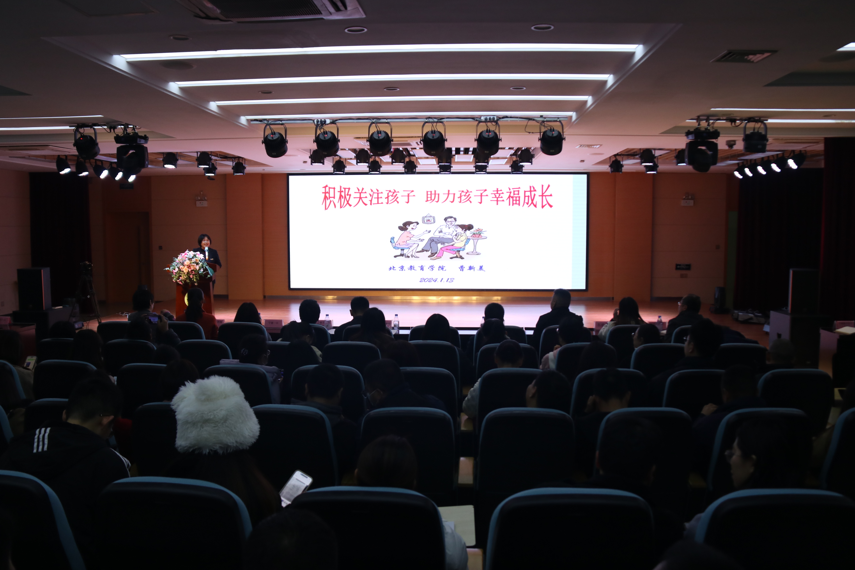 讲座邀请北京教育学院心理健康教育系教授、北京师范大学发展与教育心理学博士曹新美作题为《积极关注孩子助力孩子成长》的讲座,通过生动的案例、剖析,让老师和家长们认识到了爱与沟通在孩子成长过程中的关键作用。讲座中,曹教授还为现场家长答疑解惑。
