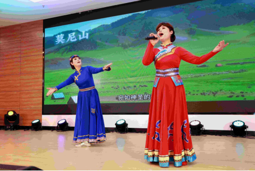 《又见山里红》作为晚会的高潮部分,以其优美的旋律和深情的歌词,讲述了对家乡的眷恋和对生活的热爱。这首男女生对唱的歌曲,以其欢快的节奏和富有感染力的演绎,引发了全场的共鸣,为晚会增添了浓厚的节日气氛,赢得了观众的阵阵掌声。