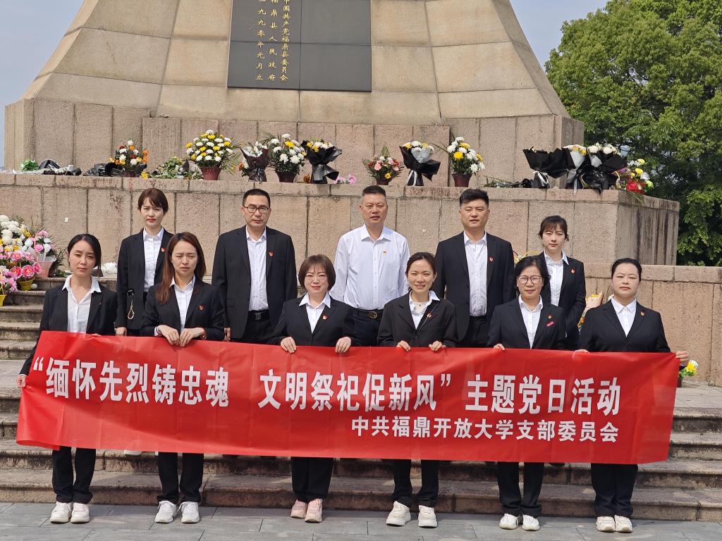 4月11日,为缅怀革命先烈,弘扬民族精神,加强爱国主义教育,增强党员的国家荣誉感和民族自豪感,福鼎开放大学党支部组织全体党员前往福鼎革命烈士陵园祭奠扫墓,开展“缅怀先烈铸忠魂 文明祭祀促新风”主题党日活动。