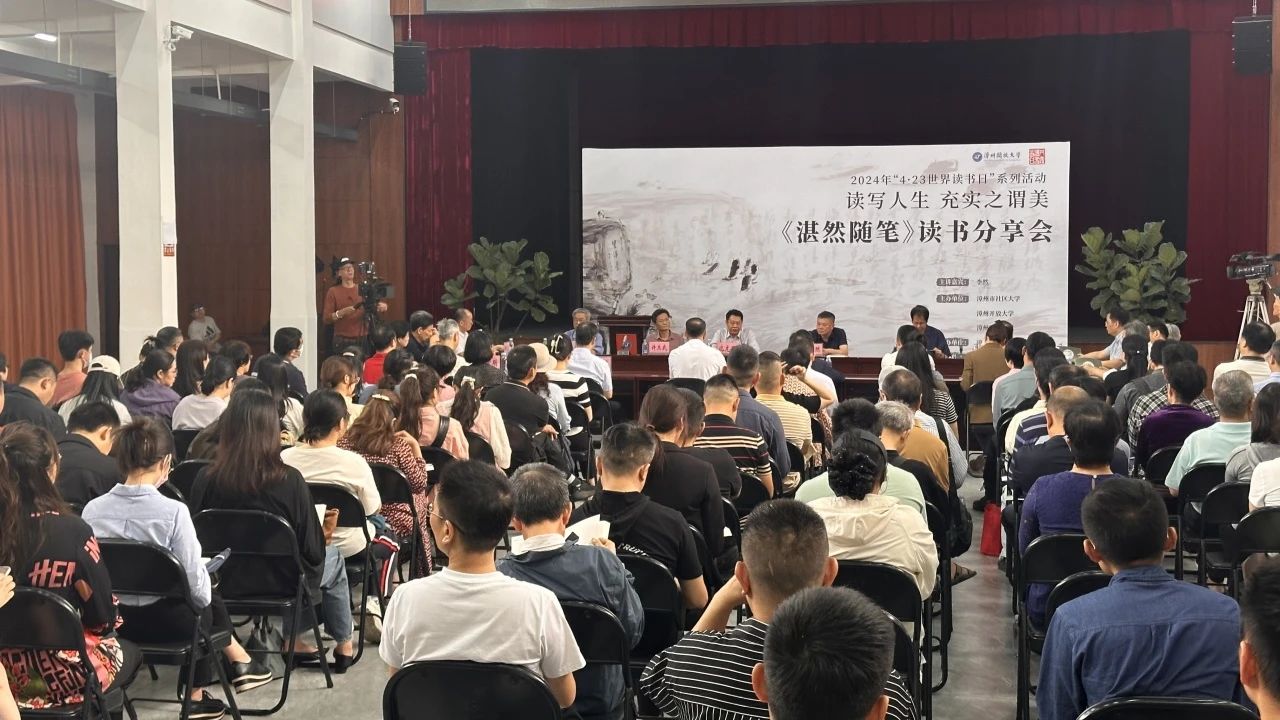 四月春恰好,读书正当时。为深入学习贯彻习近平文化思想,加强全民阅读,建设书香社会,大力传承弘扬闽南优秀传统文化,营造爱读书、读好书、善读书的浓厚氛围,在第29个“世界读书日”来临之际,“丹霞读书会”邀请漳州开放大学原党委书记、校长,福建省作协会员,研究员,漳州市非物质文化遗产专家库成员,《湛然随笔》作者李然开展“4·23世界读书日”系列活动之“读写人生 充实之谓美——《湛然随笔》读书分享会”。活动由漳州市社区大学、漳州开放大学、漳州晓风书屋主办,漳州开放大学“丹霞读书会”承办,漳州市图书馆协办,采用“线下活动+线上直播”的方式开展。漳州开放大学党委书记、校长詹志灵,党委副书记林之枫,副校长吕峰鹏出席,副校长陈毅文主持活动。漳州市作家协会代表、闽南师范大学相关代表、漳州市图书馆代表、晓风书屋代表、相关领域的专家学者、漳州开放大学师生代表、老年开放大学师生代表、丹霞读书会成员及社区居民朋友百余人参加分享会。