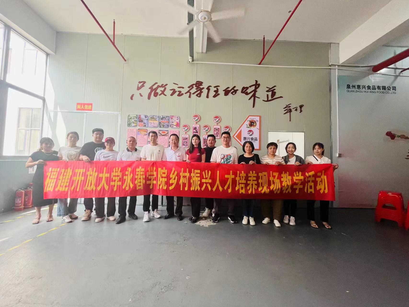 5月11日下午,福建开放大学永春学院组织2024年春季专科班部分师生到泉州惠兴食品有限公司、永春县岵山镇文溪村大胡子农庄开展乡村振兴人才培养现场教学活动。