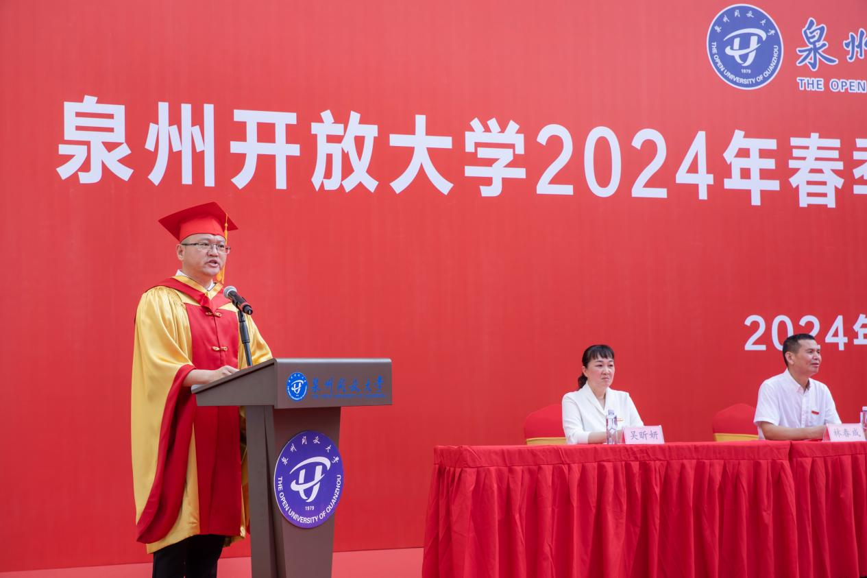 到场参加毕业典礼的还有泉州开放大学各处室以及各县(市、区)开大、学院负责人。毕业典礼由林春成主持。