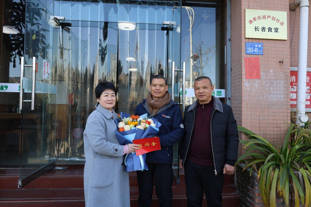 校领导先后来到黄太群免费素食餐厅“雨花斋”和李小妹工作单位,与他们亲切交谈,对黄太群长期助人为乐,李小妹在岗位上敬业奉献的精神,表达了崇高敬意与充分肯定,校长黄香喜代表学校,为他们送上鲜花和慰问金。