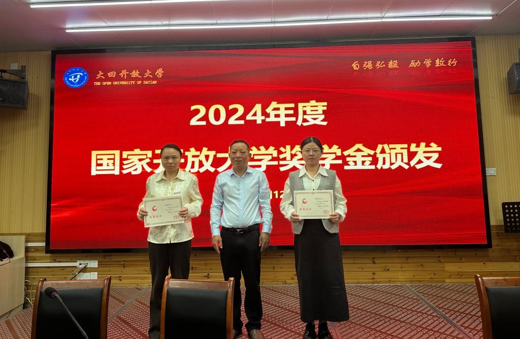 典礼上,大田开放大学校领导为获得2023年度国家开放大学奖学金的陈新珠、郑荣、黄宏婷、涂燕青等四位同学,获得全省办学体系“强国有我 开大青年说”征文一等奖周初材同学颁发了荣誉证书。