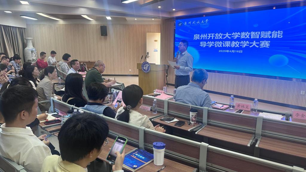 4月16日,泉州开放大学举办数智赋能导学微课教学大赛。出席此次比赛的校领导有书记、校长陈向荣,副书记、副校长陈一新,副校长林春成,邀请福建开放大学黄林昊教授、李金艳教授担任赛事评委,学校各教研组全体成员和部分教职工参与观赛。