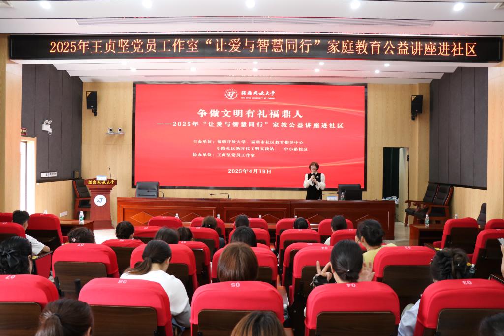 为深化福鼎市全国文明城市创建工作,提升市民文明素养,传承孝亲尊师的传统美德,福鼎开放大学联合小路社区居委会于4月19日举办“让爱与智慧同行”家庭教育公益讲座。小路社区有近100名学生家长参与活动。