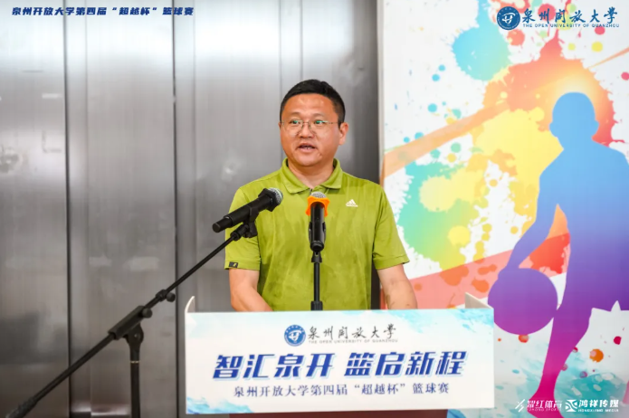 陈向荣发表了鼓舞人心的开幕词。他首先向全体参赛师生、合作单位及筹备团队致以诚挚感谢,并深情回顾了 “超越杯” 四年来的成长历程和丰硕成果,从首届仅限在校生到如今涵盖师生、校友、兄弟单位的多元参与,赛事规模与影响力不断扩大,逐渐成为凝聚各方力量、促进交流协作的重要平台,“超越杯”已成为泉开校园文化的闪亮名片。陈向荣强调,篮球不仅是竞技,更是凝聚人心的纽带。我们期待通过赛事锤炼意志、增进情谊。他期望全体运动员,善用智慧,洞察瞬息万变的赛场,以谋略把握制胜先机;敢于拼搏,以“咬定青山不放松”的韧劲,在每一次攻防中全力以赴;精诚合作,用信任传递力量,用默契铸就胜利。他勉励全体师生将赛场精神融入学习与生活,实现“体魄与智慧共进,健康与成长同行”。