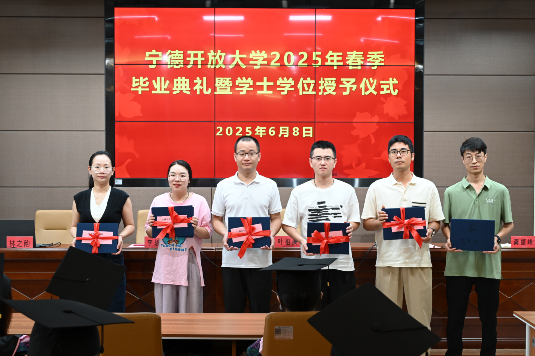 6月8日上午,宁德开放大学举行2025年春季毕业典礼暨学士学位授予仪式。宁德开放大学党委书记、校长叶祖庚出席,典礼由党委副书记、纪委书记余水淮主持。本期毕业生共697名,40人获得学士学位证书,学士学位获取人数位居全省办学体系前列。