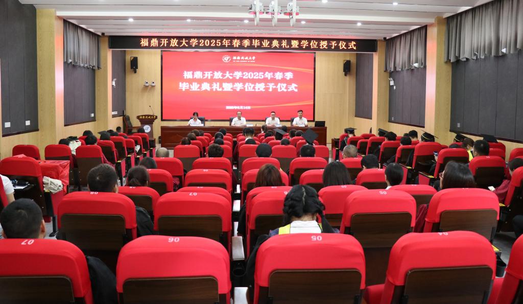 6月14日下午,福鼎开放大学2025年春季毕业典礼暨学位授予仪式在智慧厅举行。福鼎开放大学校领导班子、全体毕业班班主任和毕业生出席典礼,副校长唐文奕主持。