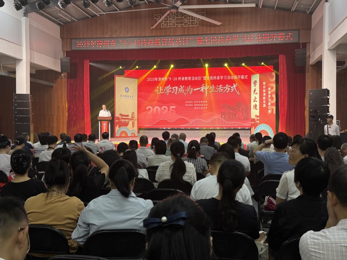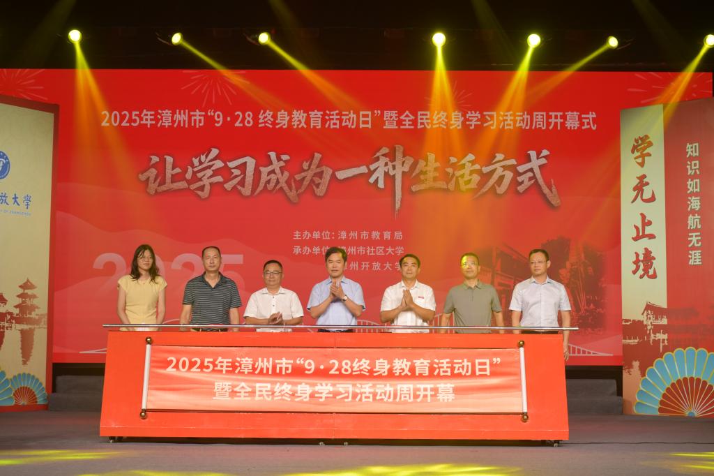 9月27日上午,2025年漳州市“9·28终身教育活动日”暨全民终身学习活动周开幕式在漳州开放大学“丹霞堂”举行。本次活动以“让学习成为一种生活方式”为主题,由漳州市教育局主办,漳州市社区大学、漳州开放大学承办。