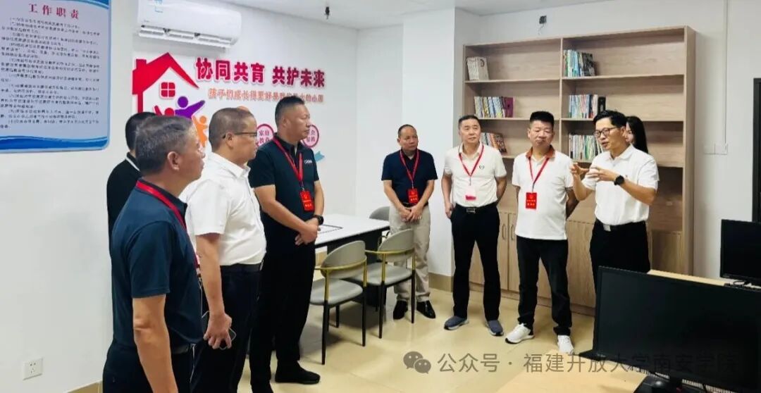 检查组一行实地察看了南安市家庭教育指导服务中心办公场所、活动场地及展板,听取了中心办公室主任、南安开放大学校长苏文德的工作汇报。苏文德就中心成立以来的工作举措、工作成效、存在问题及2026年工作思路向检查组作了详细汇报,检查组对南安市学校家庭教育指导服务中心工作提出了宝贵的意见和建议。