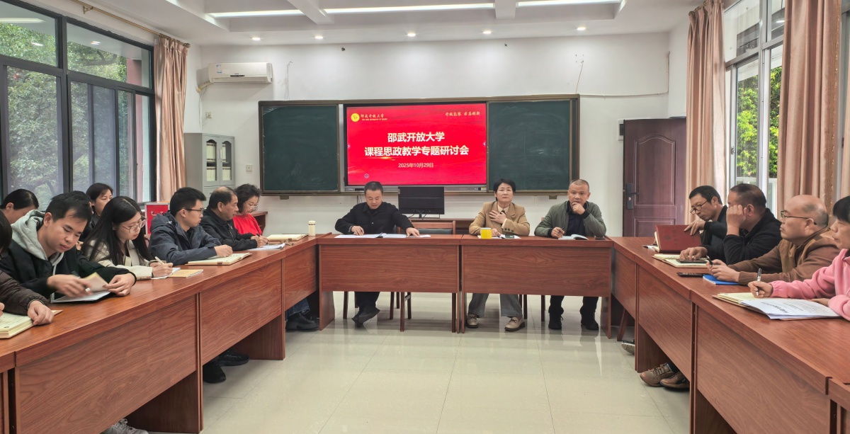 为深入贯彻落实习近平新时代中国特色社会主义思想,充分发挥课堂教学主渠道在高校思想政治工作中的作用,推动开放教育课程思政建设,近日,邵武开放大学召开课程思政教学专题研讨会。会议由副校长李小平主持,校领导班子成员及任课教师参加会议。
