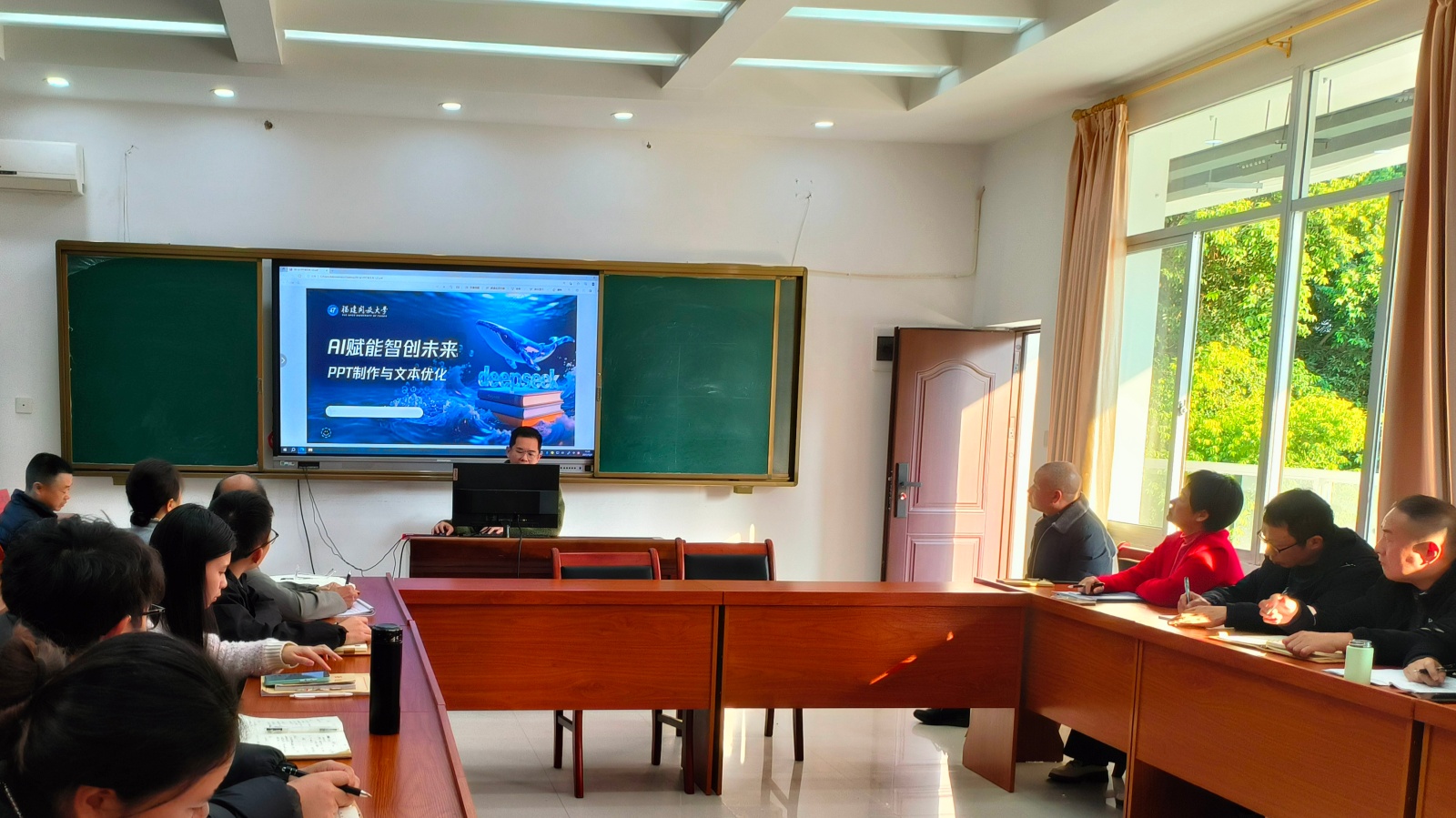 12月8日,邵武开放大学开展AI技能培训,计算机学科教师张昌江为同事们讲解了AI在PPT制作、文本优化及课堂教学中的实用技巧,助力教学与办公提质增效。