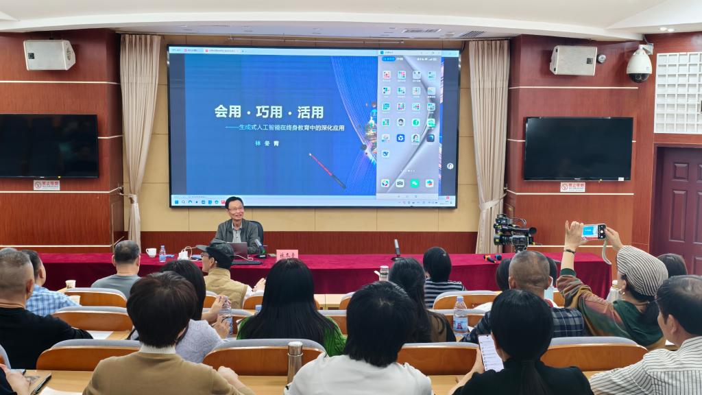 福建省教育管理信息中心原主任林冬青主讲《生成式人工智能在终身教育工作中的应用》,生动展示AI在终身教育场景的具体应用,从工具实操到形态变革,引导学员以创新思维应对智能时代的新机遇。