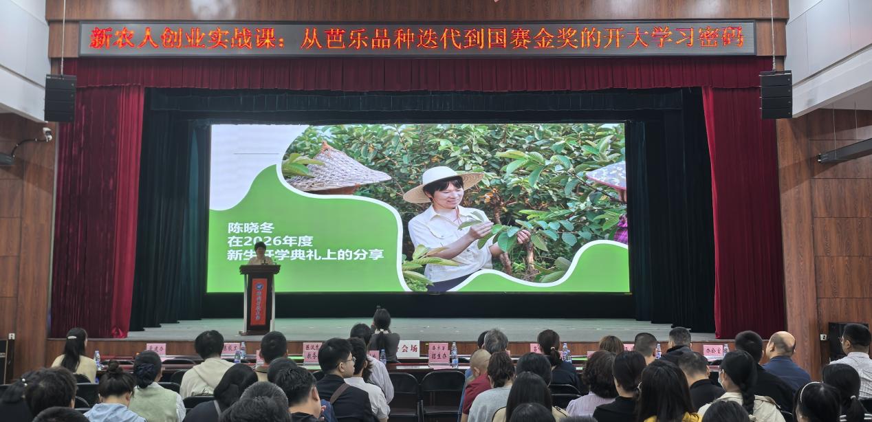 典礼特别邀请了我校产业导师、校友陈晓冬分享创业心路。她结合自身扎根闽南大地、深耕芭乐种植产业的经历,讲述了如何将课堂所学的理论知识转化为田间地头的生产力,实现从“技术小白”到“品牌领跑者”的华丽转身。她以亲身感悟告诉新生:“学以致用是连接梦想与现实的桥梁。”