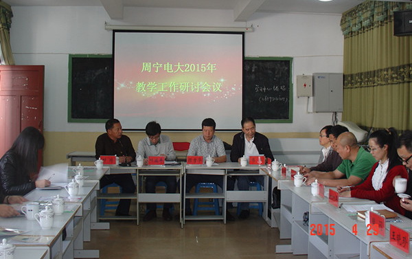 为进一步规范教学管理,提高教学质量,周宁电大于4月29日下午召开教学工作研讨会。宁德市电大分校领导、周宁县教育局领导、外聘教师代表及电大各班级辅导员参加会议。