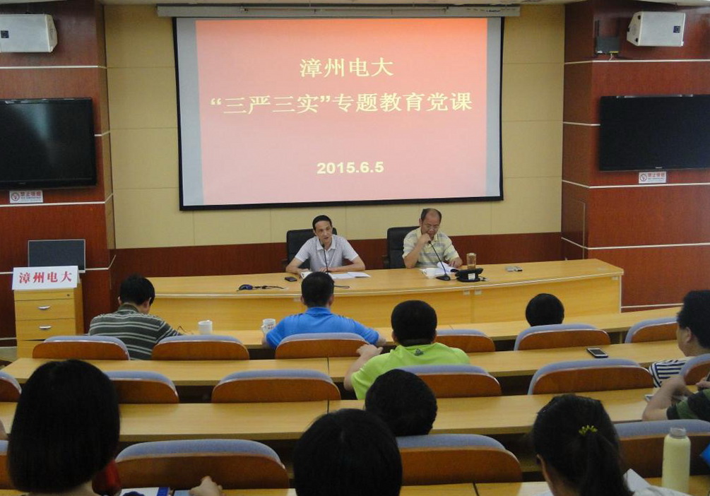 6月5日下午,党委书记曾胜利在三楼大会议室讲授“三严三实”专题教育党课,并部署 “三严三实”专题教育工作。党委副书记、校长许友明主持专题党课。全体校领导,中层干部、在职党员、部分离退休干部参加学习。