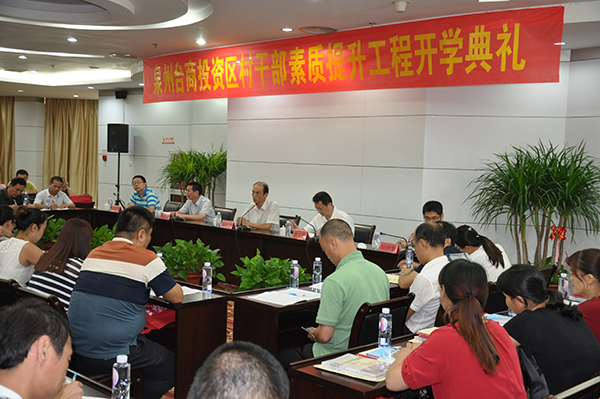10月9日下午,泉州电大与台商投资区联合举办的村干部素质提升工程开学典礼在台商投资区行政楼隆重举行,泉州电大校长杨永清、副校长林春成,台商投资区党工委委员、管委会副主任、党群工作部部长李文生,区党群工作部副部长刘增繁,各乡镇党委组织委员等出席了开学典礼。