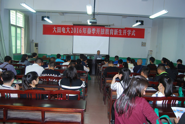 4月9日上午,大田电大举行2016年春季开放教育新生开学式。新生各专业班主任及100余名本、专科新学员参加了开学式。