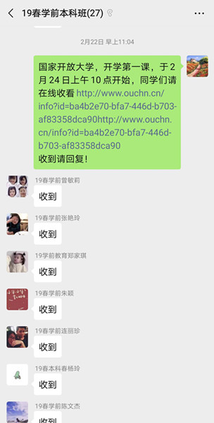 课后,众多师生感慨“有力量、有温情、有感染力,这个第一课‘不一般’”!大家纷纷表示要严格要求自己,按照学校发布的《2020年春季开放教育、成人教育、开放教育二元制网上教学安排表》,积极参与丰富多彩的远程线上学习,确保自己返校时实现远程线上教学与校园课堂教学的顺畅转换。同时保持积极乐观的心态,努力做科学防控的表率,落实好各项防疫措施,加强自我心理调节和身体锻炼,胸怀大局,努力用实际行动传达国开人的爱国担当,共筑开放大学命运共同体的美好明天。
