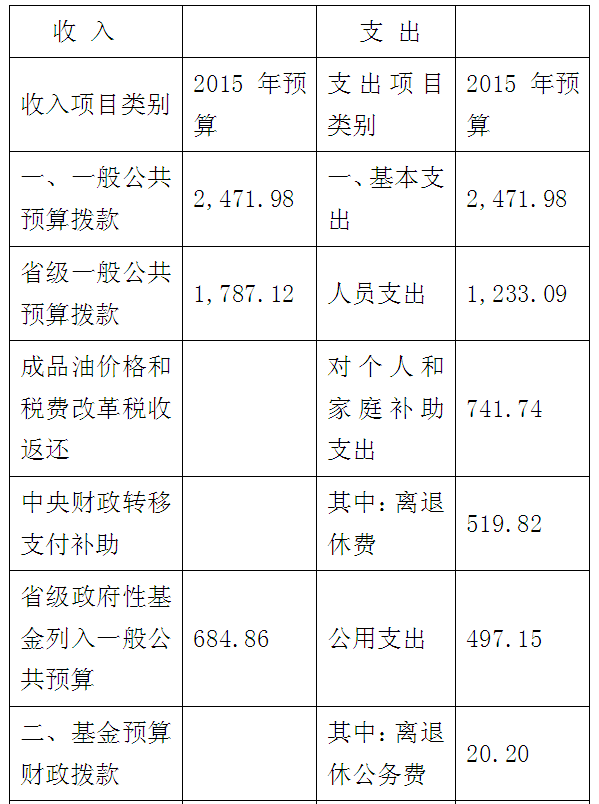 2015年度公共财政预算拨款支出2471.98万元,主要支出项目(按科目分类统计)包括: