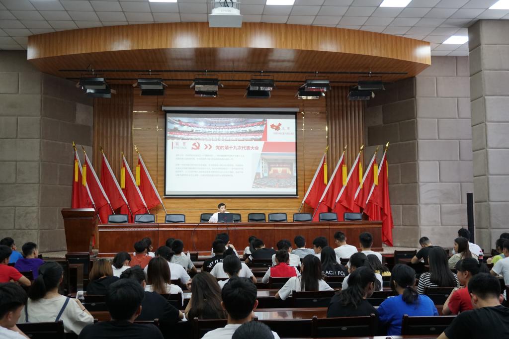 讲座上,校团委书记应木荣以“新征程—党的十九大精神学习交流”为主题,从“青年学生为什么要学习党的十九大精神”、“学习党的十九大精神要学哪些重点”、“青年学生如何贯彻落实党的十九大精神”三个方面入手,以严谨科学的数据和生动形象的事例为团员青年展开讲解,号召同学们努力学习,勇于担当使命,为拥有美好的未来而奋斗。