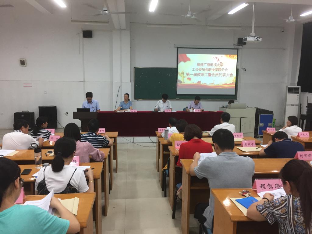 5月31日下午,福建广播电视大学工会委员会职业学院分会第一届教职工暨工会会员代表大会在博厚楼新阶梯教室召开。应出席本次大会的代表共计40人,实到35人。会议由职业学院党总支书记吴宁晖主持,校工会常务副主席游璇应邀出席。