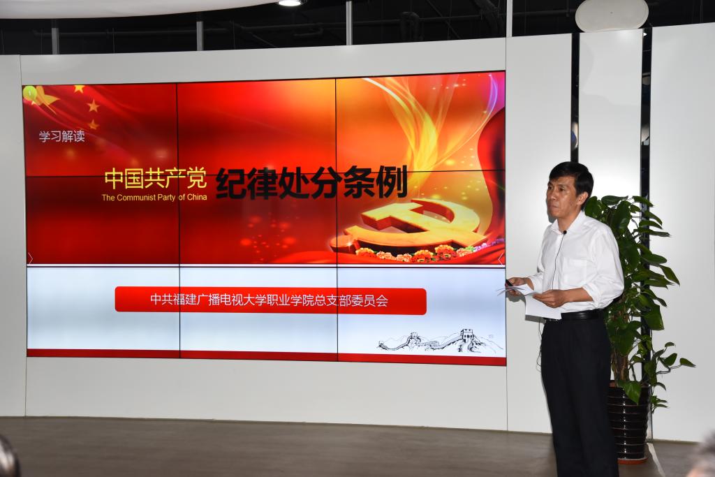会上,学校纪委委员吴宁晖为大家解读新修订的《中国共产党纪律处分条例》,介绍《处分条例》历次变化的过程,分析了此次修订后的重点和亮点,强调要坚持纪在法前,纪严于法。随后,支部组织大家观看了清廉中国微电影《公务接待》、微视频《传家宝》,参观了学校廉政文化教育中心的廉政电子阅览区、廉政知识测试区、廉政图书区、多媒体展示区、学习研讨区等,使大家更深层次接受了廉政文化教育的洗礼。