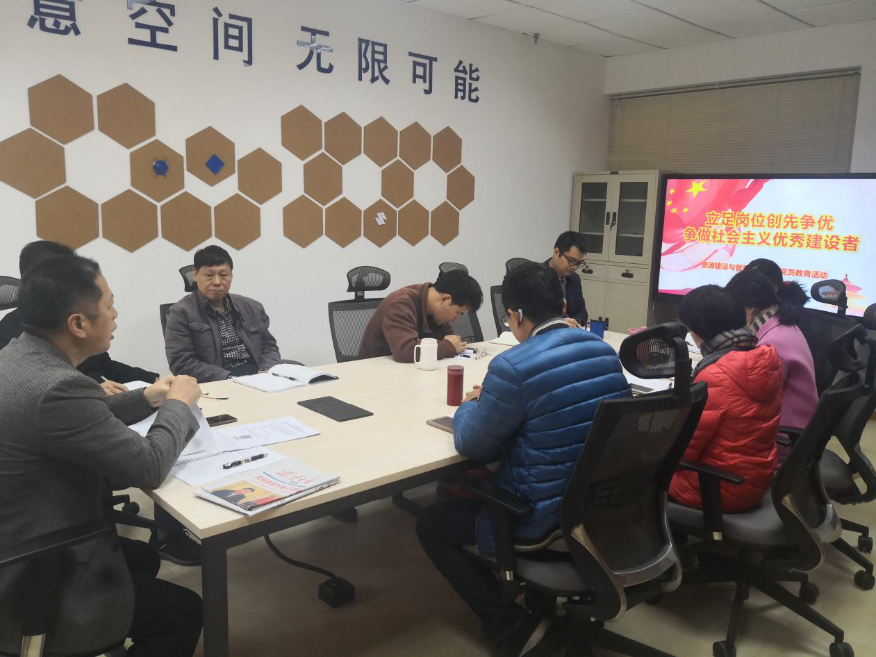 会上陈明阳同志为支部党员解读了习近平在全国教育大会上强调《坚持中国特色社会主义教育发展道路培养德智体美劳全面发展的社会主义建设者和接班人》和教育部党组深入学习领会习近平总书记关于教育的重要论述《坚定不移走中国特色社会主义教育发展道路》精神,支部书记代表支委对这次党日活动总体方案安排作了说明,通过中心党员学习QQ群开展岗位创先争优线上讨论与经验分享,在中心网页开辟“立足岗位创先争优”专栏,推动活动持续、有效开展。林静、陈晓婷两位青年党员就如何立足岗位上创先争优,做一名社会主义优秀建设者做主题发言,其它党员们结合岗位履职,推动支部2019年各项工作再上新台阶展开交流讨论。全体党员还集体收看《榜样3》专题纪录片。