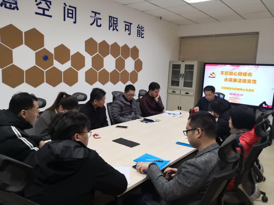 12月31日,资源建设与管理中心党支部在三楼创客教室开展“不忘初心担使命,永葆廉洁强党性”主题党日活动,支部书记陈明阳主持,全体党员参与活动。