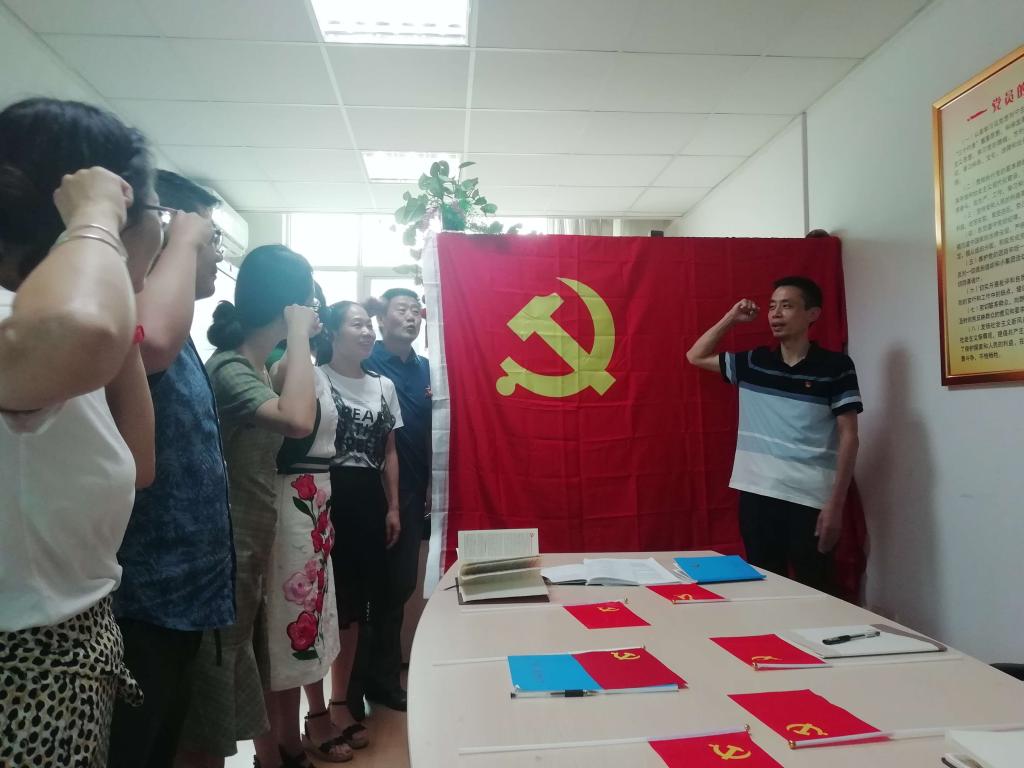 在雄壮的国际歌声中,全体党员共同佩戴了党员徽章。杨聪颖和俞建军作主题发言。杨聪颖指出:心中有信仰,脚下有力量,只有心存百姓,牢记宗旨使命,才能在这场新冠疫情大考中突显共产党人“为人民服务”的恒心,也是检验党员干部的试金石。俞建军表示,在这场战疫的人民战争中,我们看到了中国的成绩,更加坚定了道路自信、理论自信、制度自信和文化自信。其它党员还从基层社区工作者工作、自身履行岗位职责和引导身边家人朋友正确战疫等多个角度分享了战疫小故事。最后在支部书记的带领下重温了入党誓词。