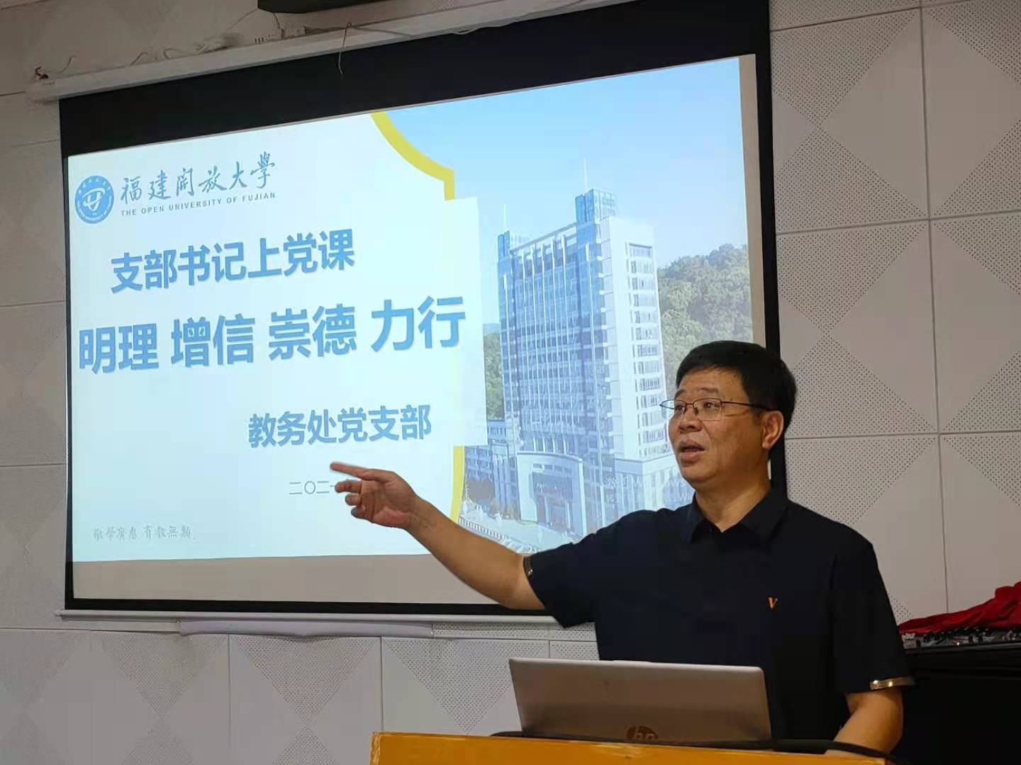 活动中,李正光以 “明理、增信、崇德、力行”为主题,以“邹家一门七英烈”和“张鼎丞和一段残墙”两个闽西老区红色历史故事为载体为大家上了一堂生动的党课。李正光强调,全体党员同志要积极投身于党史学习教育中,全面准确理解“学史明理、学史增信、学史崇德、学史力行”的科学内涵和核心要义,不断将党史学习成果转化为干实事、办实事、干成事的动力,做到履职尽责、担当作为、实干办事,以昂扬姿态奋力为建设高质量福建开放大学做出新贡献,以优异成绩迎接建党一百周年。