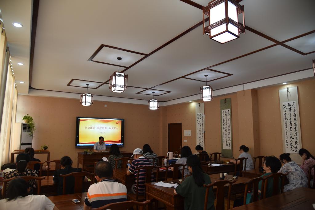 刘玉兴以《以史强党、以史崇德、以史育人》为题,回顾了党的新民主主义革命奋斗史,分析了中国共产党在新民主主义革命时期取得胜利的经验启示。党课以新民主主义革命的四个阶段的重大事件为主线,着重讲述新民主主义革命的历史背景、艰辛历程以及历史意义。