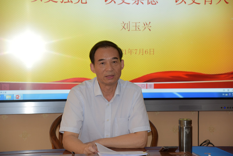 7月6日下午,文经学院党总支召开党员大会,总支书记刘玉兴为学院全体党员讲党史学习教育专题党课。