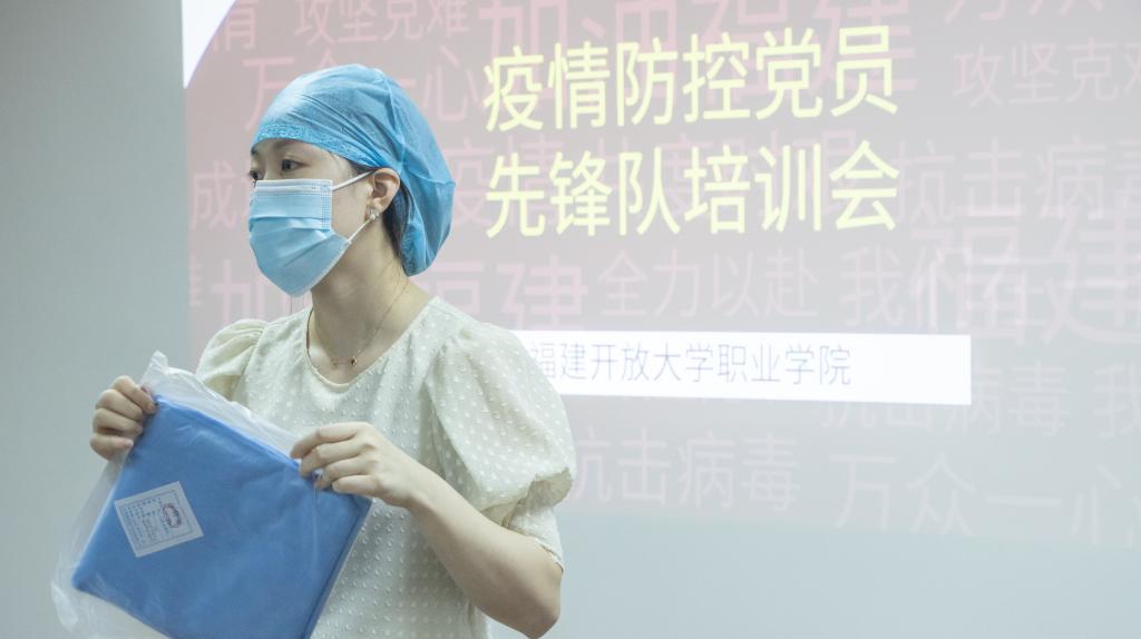 9月20日,职业学院在明德楼9楼会议室召开疫情防控党员先锋队培训会,会议传达了《中共福建开放大学委员会关于在疫情防控中进一步发挥基层党组织战斗堡垒作用和广大党员先锋模范作用的通知》文件精神。会上,校医务室两位党员为大家做了隔离场所防控专项培训,现场演示了七步洗手法、口罩、手套、防护服等防疫物资的正确使用方法,并为大家介绍了隔离值班的注意事项和应急防护措施。