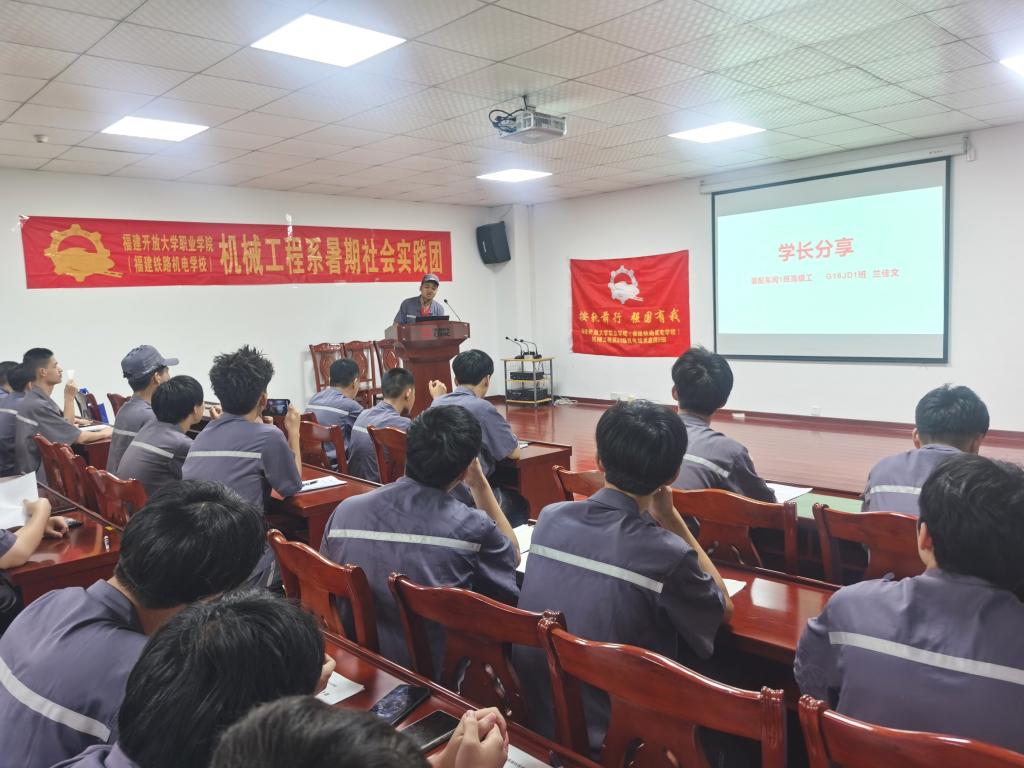 8月6日晚,机械系党支部带领20JD2班团支部在企业开展了首次阶段性交流汇报会,汇报会邀请了G16JD1班校友,现装配车间高级工兰佳文参与。同学们以小组为单位交流汇报了参与岗位实习一周以来的种种收获,共同分享着一周以来的辛勤与喜悦。装配2班团员学生杨凯琪说:“8月的泉州,酷暑当头,我们在车间参与实践,每一次操作都伴着一份收获,让我们进一步体会了什么是知行合一,汗水虽然浸湿了工帽,梦想却照进了未来。”