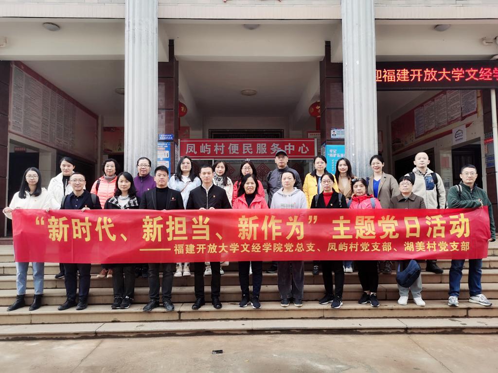 12月2日,文经学院党总支与福清市城头镇凤屿村党支部、湖美村党支部联合组织“新时代、新担当、新作为”主题党日活动,开展党的二十大精神学习交流,举行基层党组织合作共建签约仪式,参观龙卧红色文化纪念园。文经学院党总支全体党员、学生网上党支部成员,凤屿村党支部书记陈兴、湖美村党支部书记高叶及村两委成员约三十人参加活动。