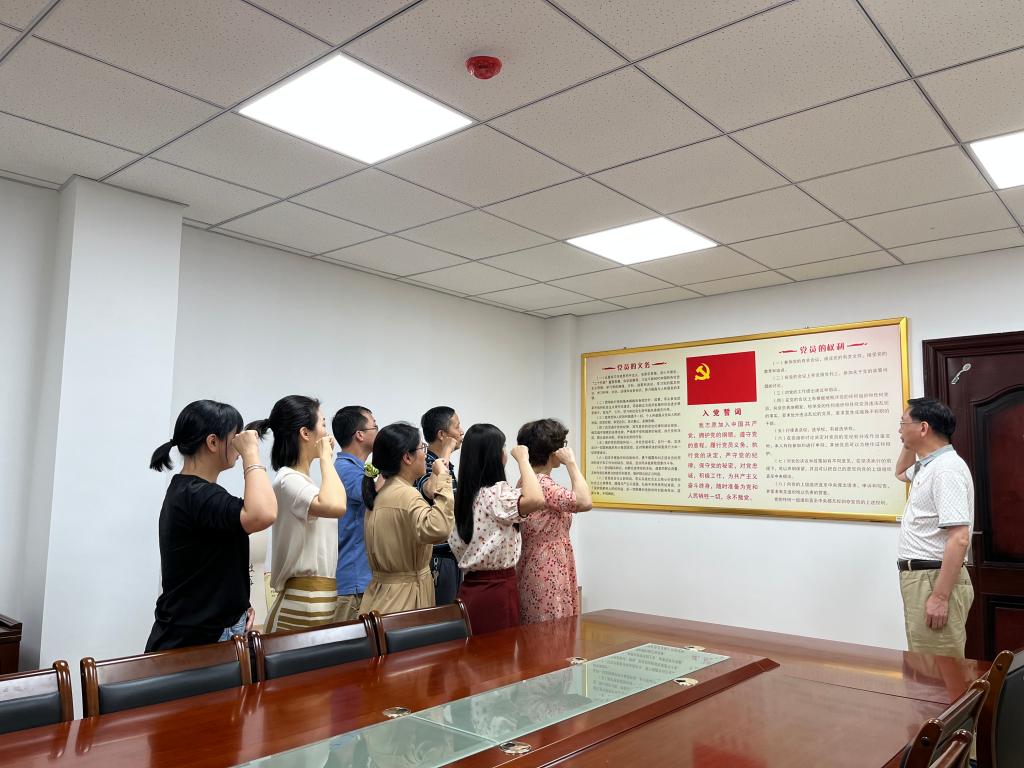 活动最后,学院全体党员佩戴党员徽章,整齐列队,在周文明的带领下面,郑重举起右拳,怀着对党的无限忠诚与热爱,饱含热情,铿锵有力地重温了入党誓词,回顾入党宣誓时的庄严承诺,再一次接受党性的洗礼。