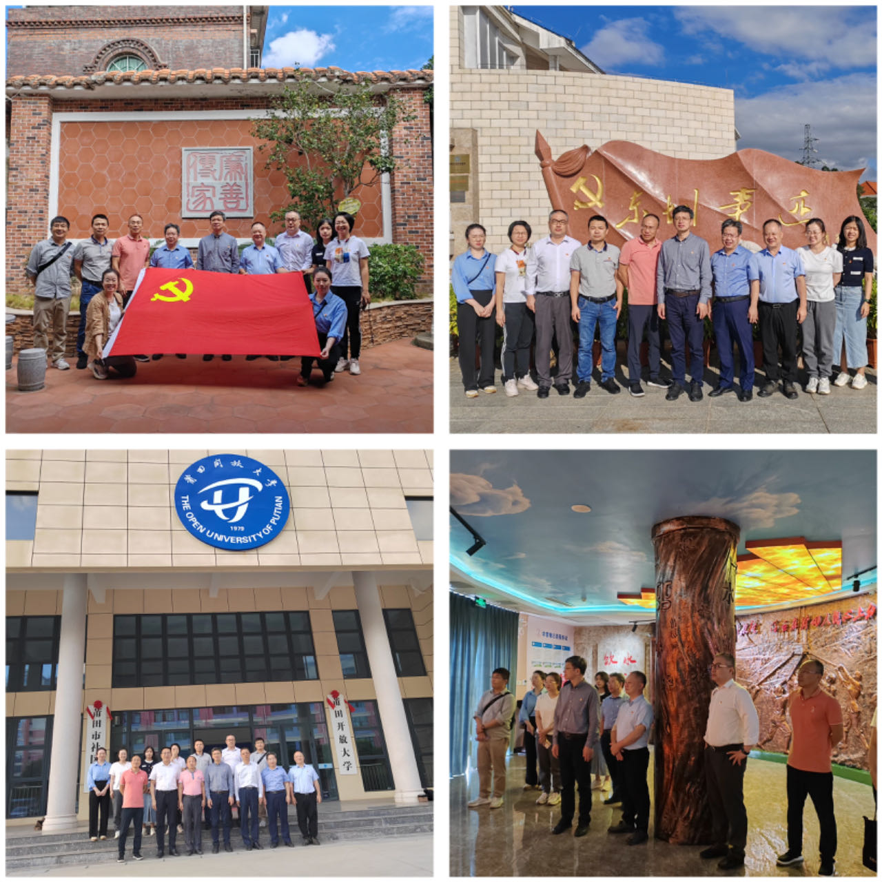 在全国乡村振兴治理示范村——江口镇东大村,支部党员参观了东大村党群服务中心、华侨历史展示馆和侨乡家训馆等,听取了当地村镇干部分享的东大村传承优秀传统文化、优良侨乡家风开展乡村振兴工作的建设实践,就地开展了廉政教育微课,并向东大村赠送了《闽山闽水物华新》《习近平在福建》等书籍。在福建省廉洁文化教育学习点——东圳精神教育基地,党员们聆听了东圳水库兴建史,参观了东圳水库兴建图片展和建库工具、生活用品等实物展示,观看《与人民想在一起干在一起》《东圳水库发展现状》宣传片,深刻领悟“团结协作、艰苦奋斗、无私奉献”的东圳精神;在莆田开放大学,支部党员走进国家普通话水平测试考场、走进学员公寓,详细了解莆田开放大学的办学情况,并就体系一体化办学、党建相融互促等工作与莆田开大总支开展进行了联学共建座谈交流。莆田开大校领导李岩峰、苏键和凌文东及有关科室同志参加座谈。