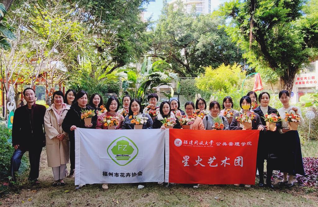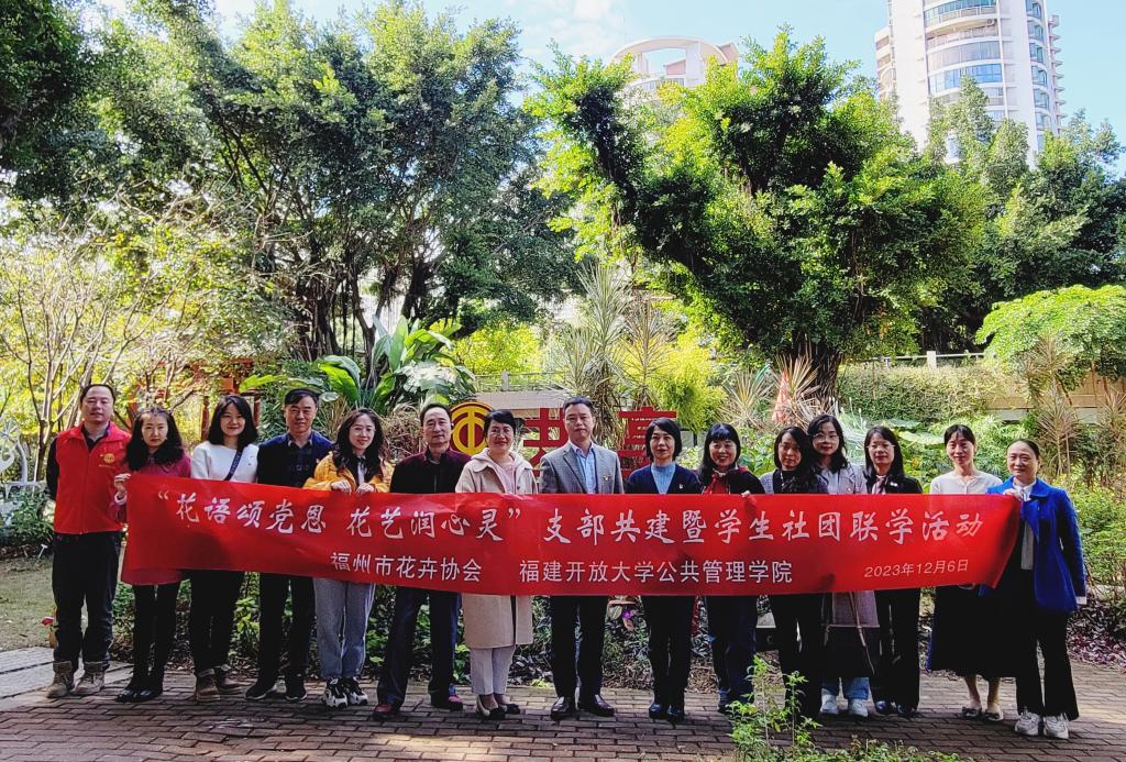 为积极探索和推进党建工作创新,充分发挥党支部间的优势互补、双融双促作用,以党建引领学生社团建设,12月6日,公共管理学院党政管理党支部联合教师党支部、学生党员E支部及“星火艺术团”学生社团,赴福州市花卉行业协会,开展“花语颂党恩 花艺润心灵”支部共建暨学生社团联学活动。此次活动是学院社团活动月系列活动之一,得到了福州市花卉行业协会的大力支持,协会党支部书记、理事长康筱筠,福州市花卉行业工会联合会主席陈熙出席,学院师生党员、“星火艺术团”成员40余人参加活动。