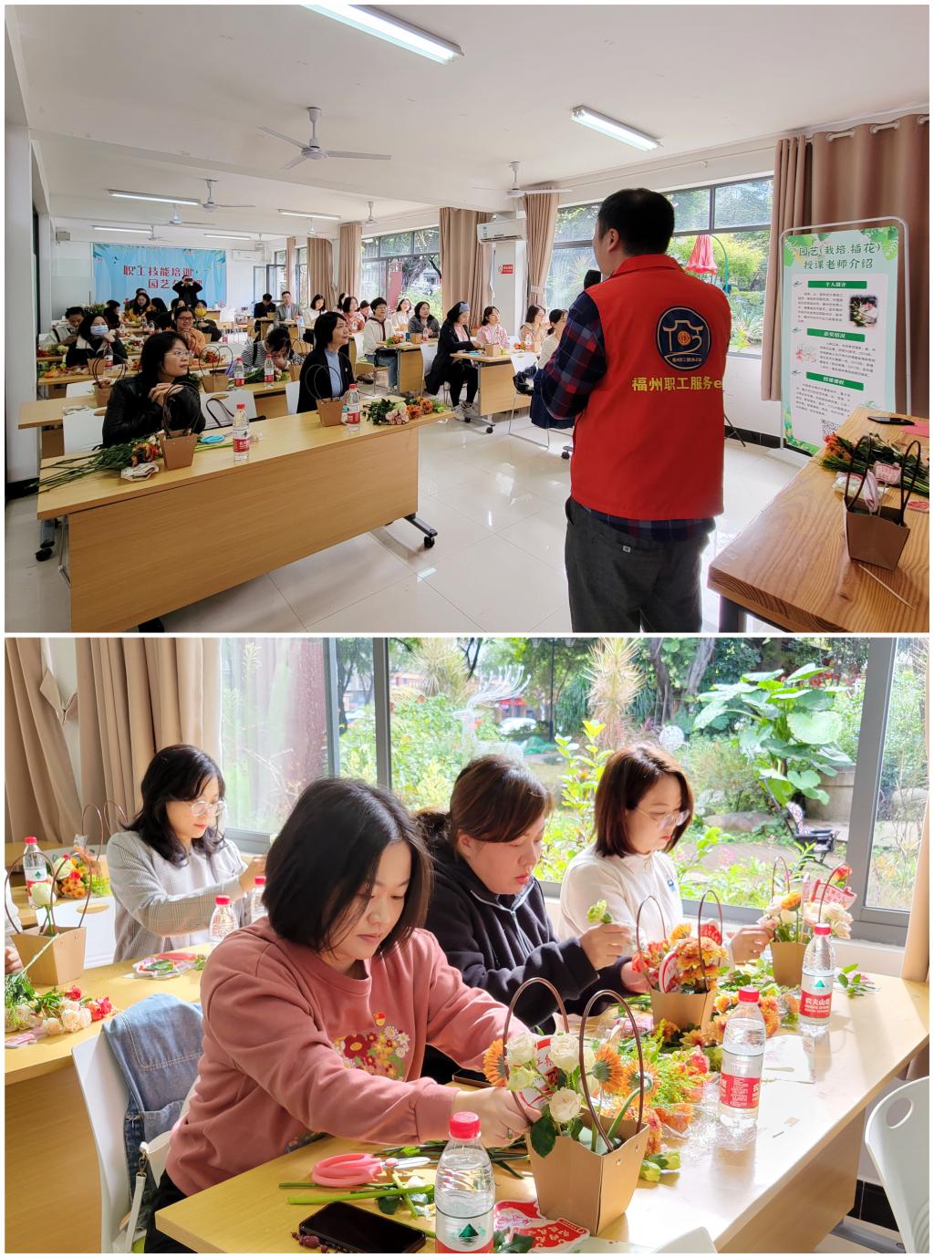 师生聆听花艺课、体验插花