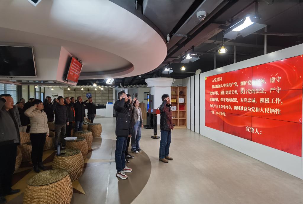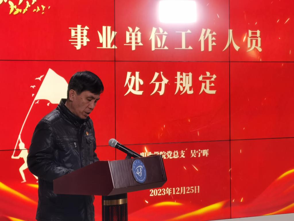 活动的第一项议程是集中收看央视专题节目《榜样8》,节目以讲述为特色,展示了一批先进模范人物的感人故事。通过观看优秀党员的自述,与会党员深入了解到党员的为民情怀和使命担当,进一步激发了大家履行党员职责的热情和动力。紧接着,蔡慧雄同志和郭丽祥同志分享了学习心得和观后感。他们讲述了自己在观看节目时的感受和体会,强调了为民情怀和使命担当对于每个党员的重要性。他们的分享鼓舞了在场党员,引发了深入思考和交流,特别是如何更好地履行党员的使命和责任。随后,职业学院党总支书记吴宁晖进行了关于《事业单位干部工作人员处分规定》的讲解和学习。他详细解读了该规定的内容和要求,强调了党员干部始终保持廉洁自律的重要性。随后,蔡慧雄、陈龙、郭丽祥三位预备党员进行了入党宣誓。全体与会正式党员与他们一起重温了入党誓词,庄重而激动的声音在会场中回荡。
